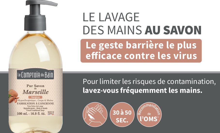 Le Comptoir du Bain est une marque française qui allie tradition, plaisir et modernité, pour offrir une large gamme de produits d’hygiène et de bien-être, colorés, parfumés et à la qualité optimale, dont les fameux savons de Marseille.